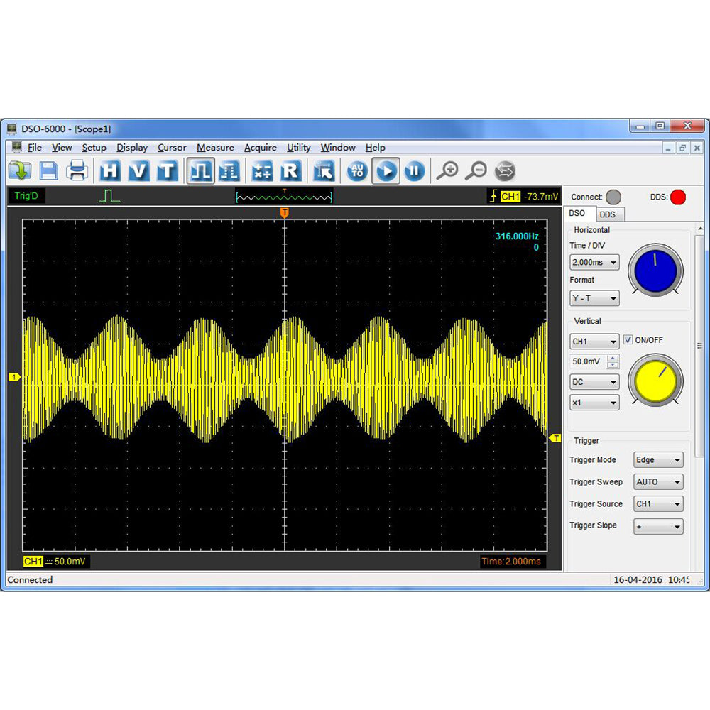 - 4チャンネルオシロスコープ、1GSa/sリアルタイムサンプリングレート、2mV-10V/DIVの高入力感度と広い入力範囲、70MHzの高帯域幅、