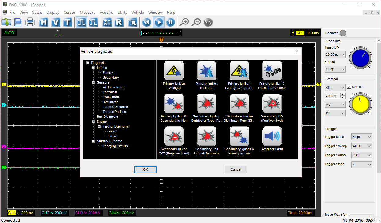 80種類以上の自動車測定機能を標準装備(点火動作/センサー/バス診断/パフォーマー/起動と充電)。USB 2.0インターフェースはプラグアンドプレイで、追加の電源は不要。タブレットPCをサポート。WIN10/WIN8/WIN7などをサポート。ソフトウェアは継続的に無料アップグレードされ、コストパフォーマンスが向上しています。USBXIをサポートし、操作が簡単です。4チャンネルオシロスコープ、1GSa/sのリアルタイムサンプリングレート、2mV-10V/DIVの高入力感度と広い入力範囲、70MHzの高帯域幅、小型で持ち運びに便利。ダイナミックカーソルトラッキング、波形記録および再生機能。