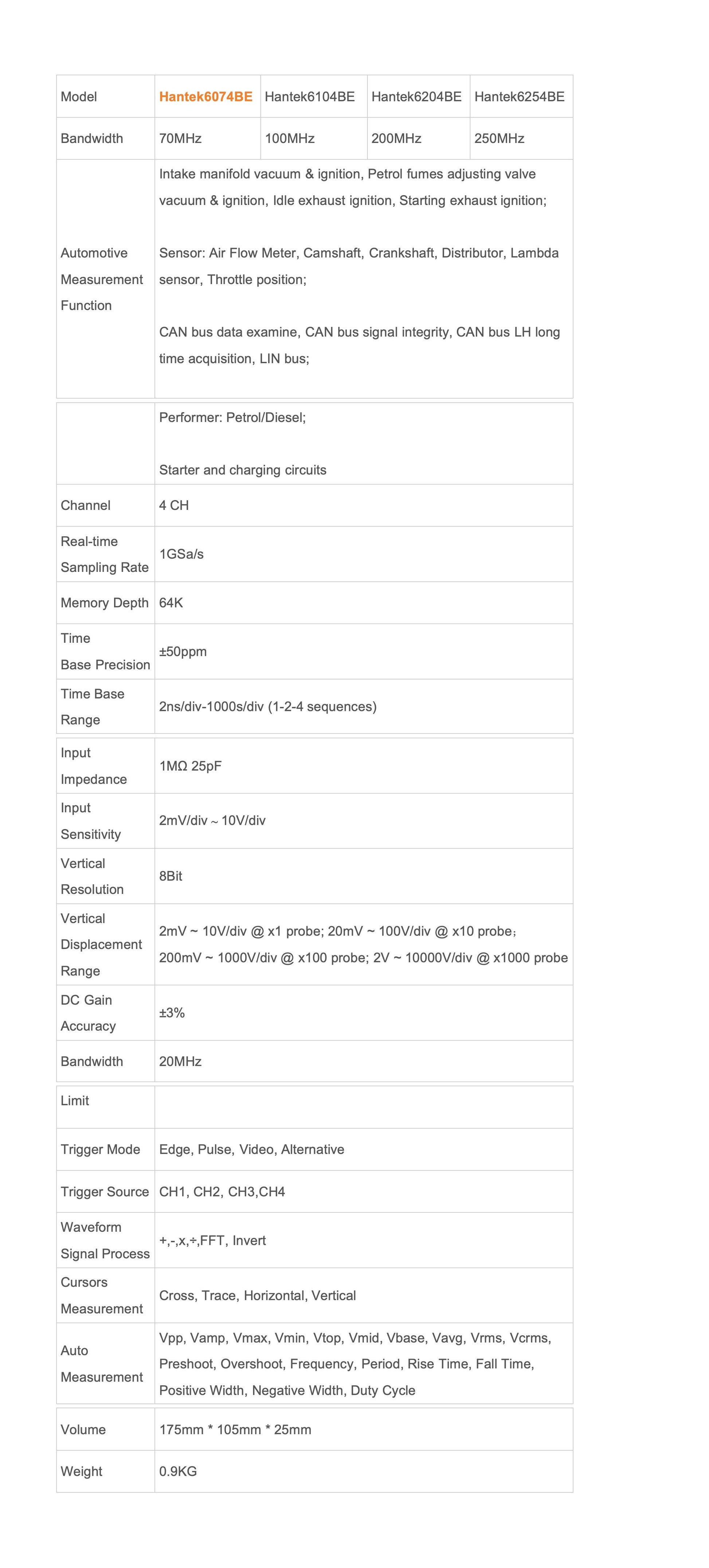 Hantek 6074BE I 自動車測定 BUS 診断 4 絶縁チャンネル オシロスコープ